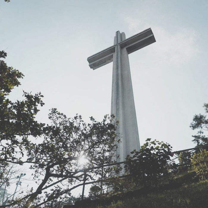 The cross is considered to be the second tallest cross with a height of 92 meters. The base of the cross is filled with sculptures that represents the events that happened in our country. It is located near the summit of Mt. Samat in the town of Pilar.